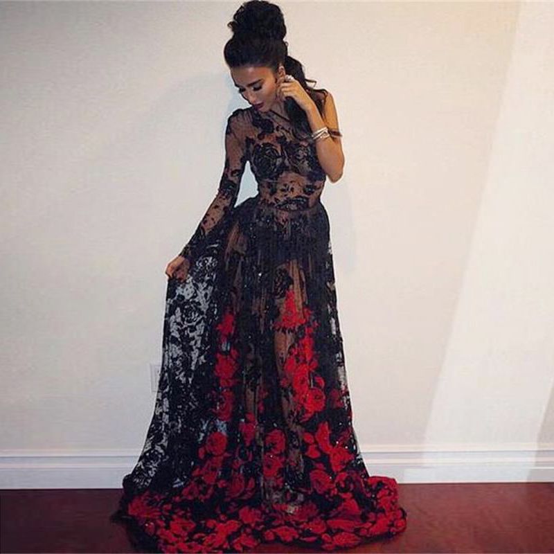 abendkleid rot schwarz