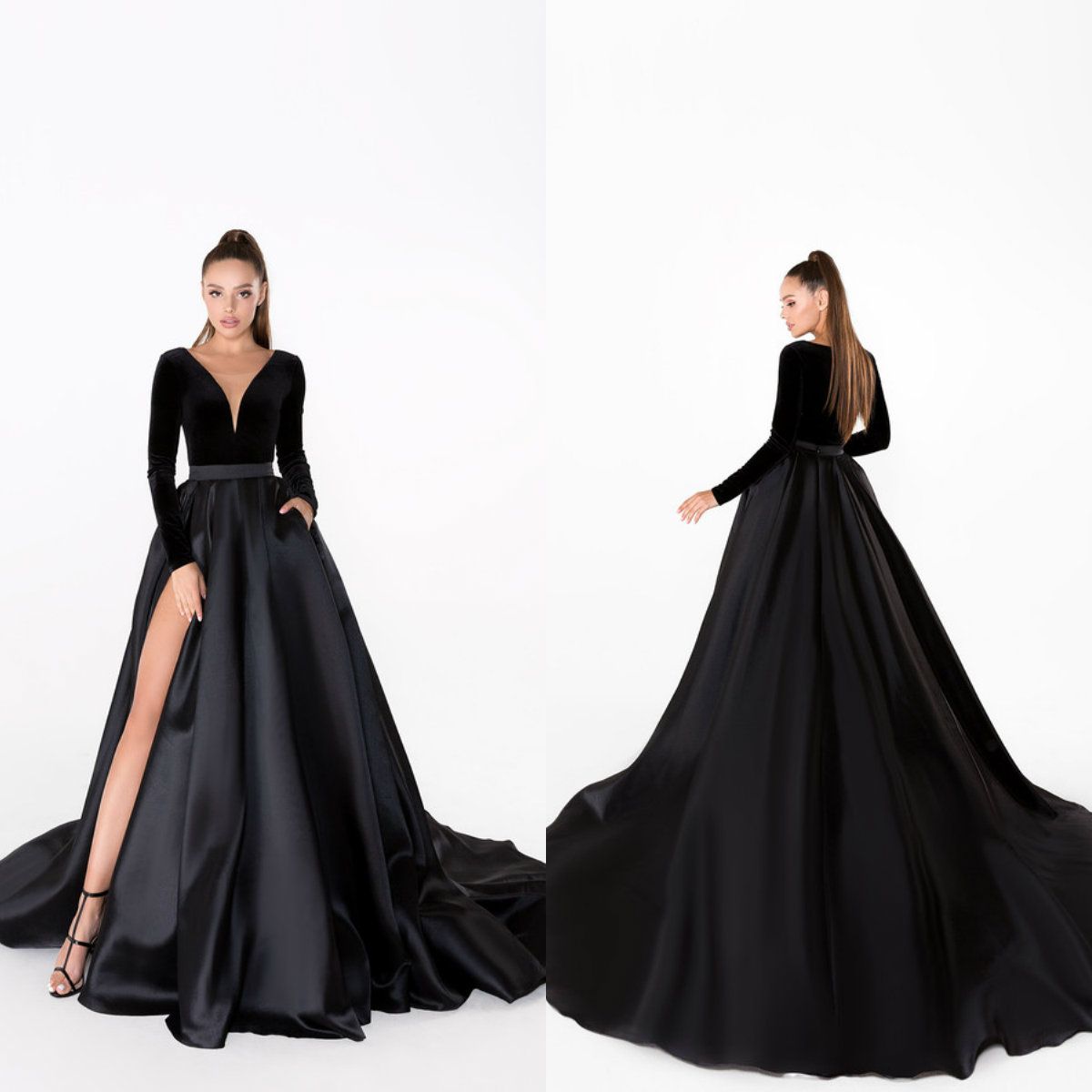 abendkleid satin schwarz