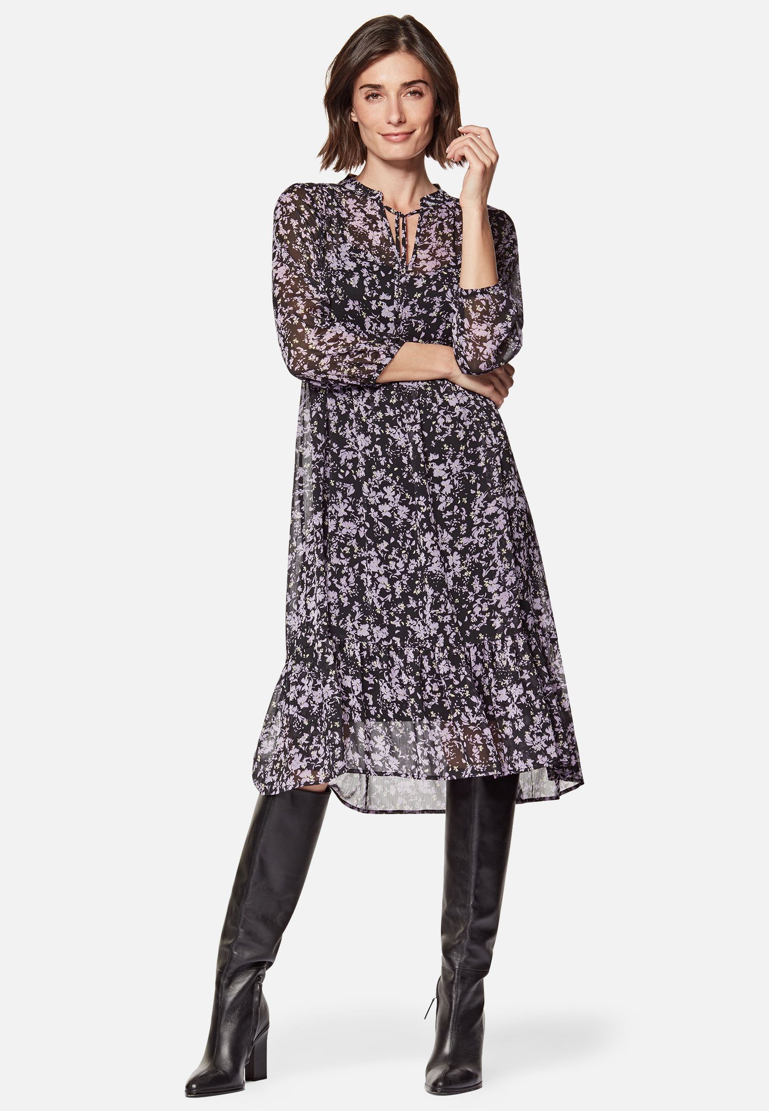 chiffon kleid schwarz langarm