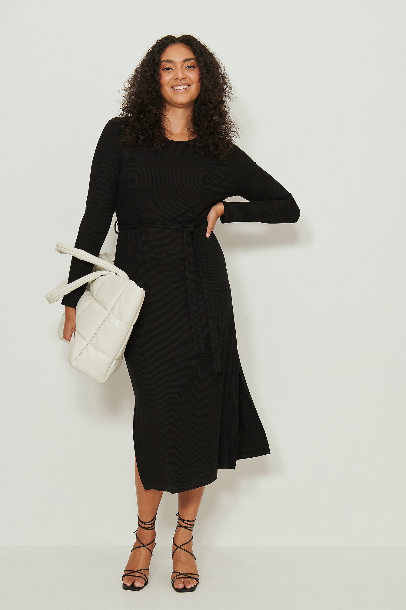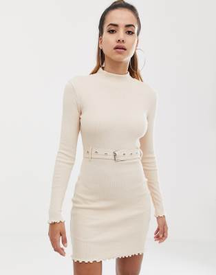 geripptes kleid mit gürtel