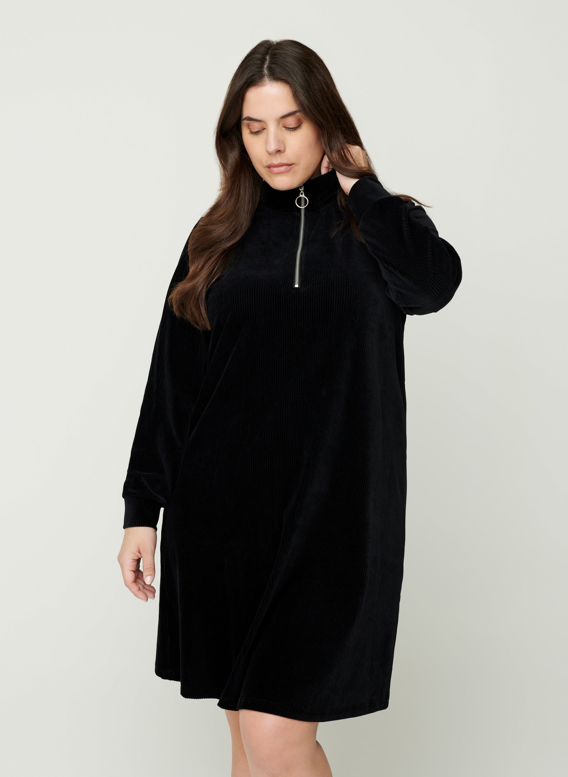 hochgeschlossenes kleid schwarz