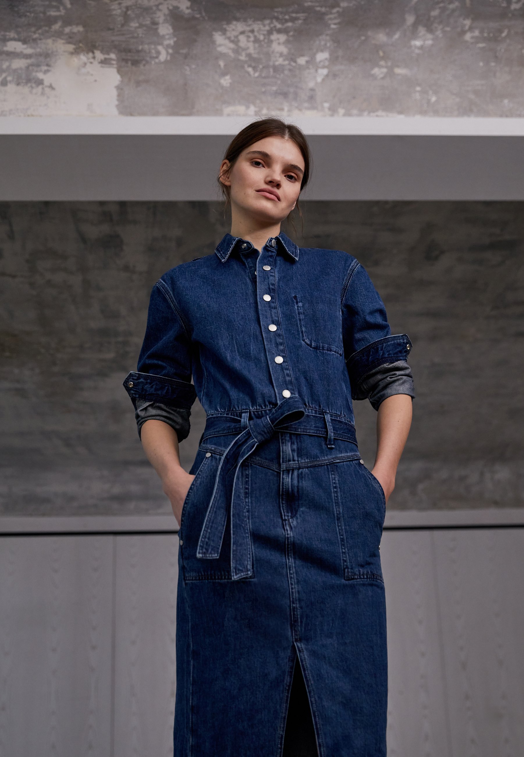jeanskleid mit volantärmel