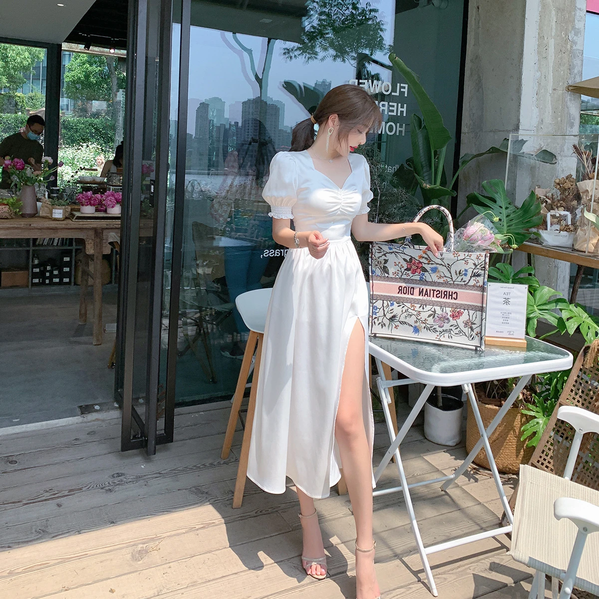 kleid lang mit schlitz sommer