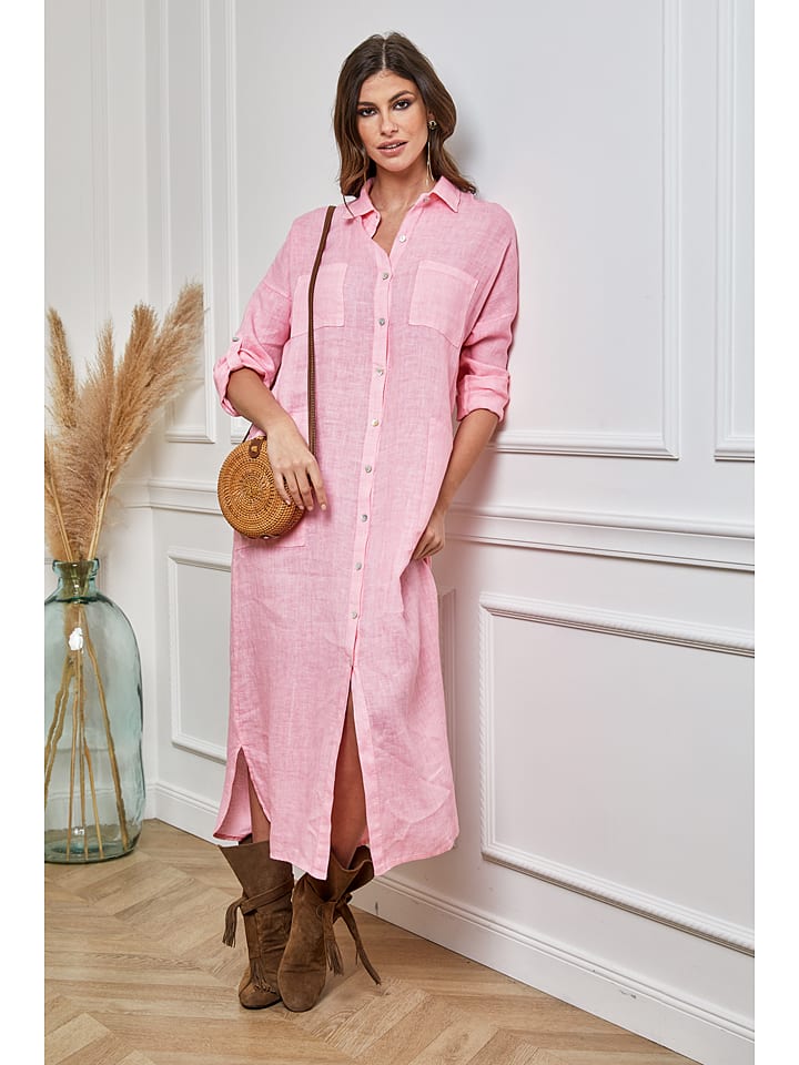 kleid leinen rosa