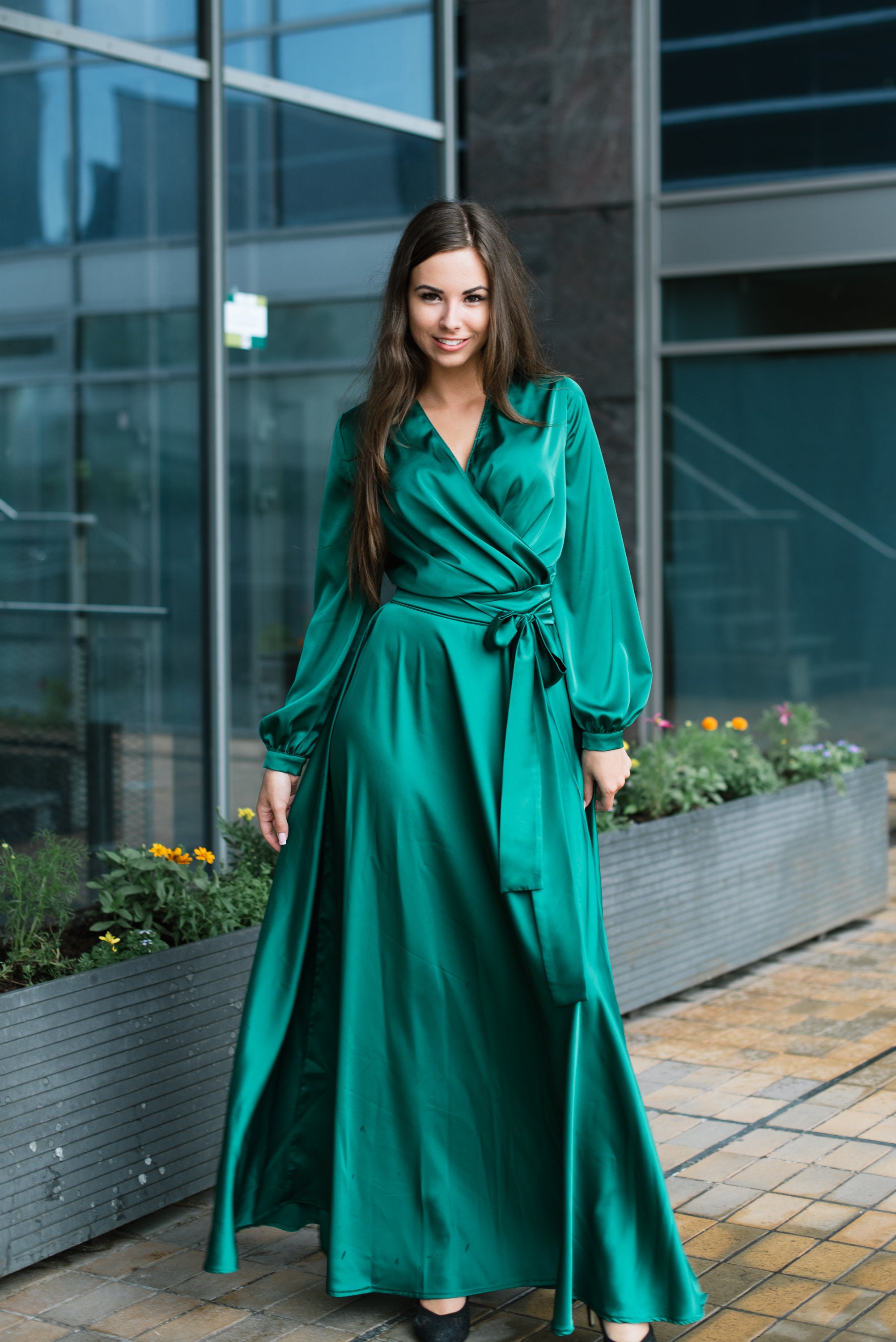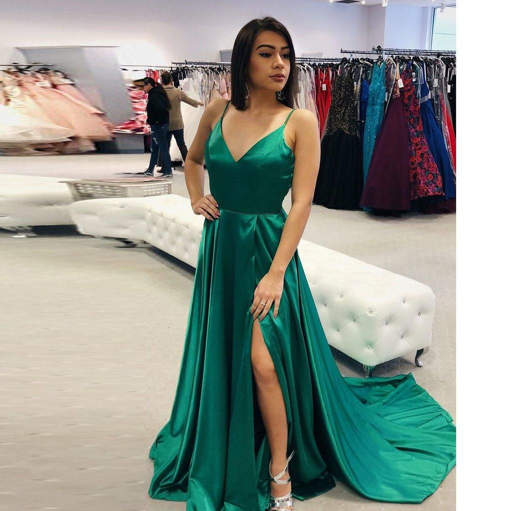 kleid mit schlitz grün