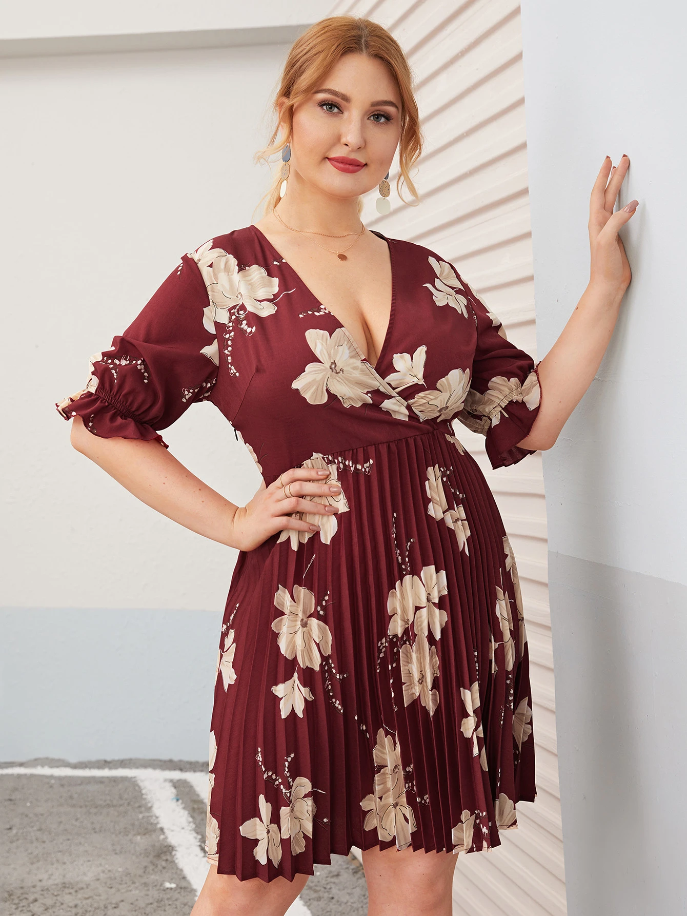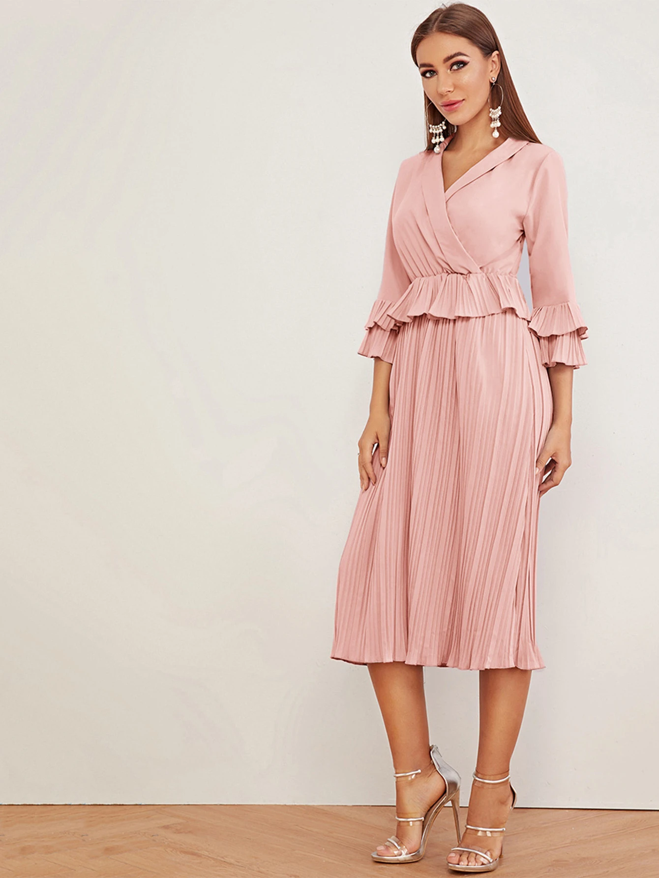 kleid mit v ausschnitt und plissee