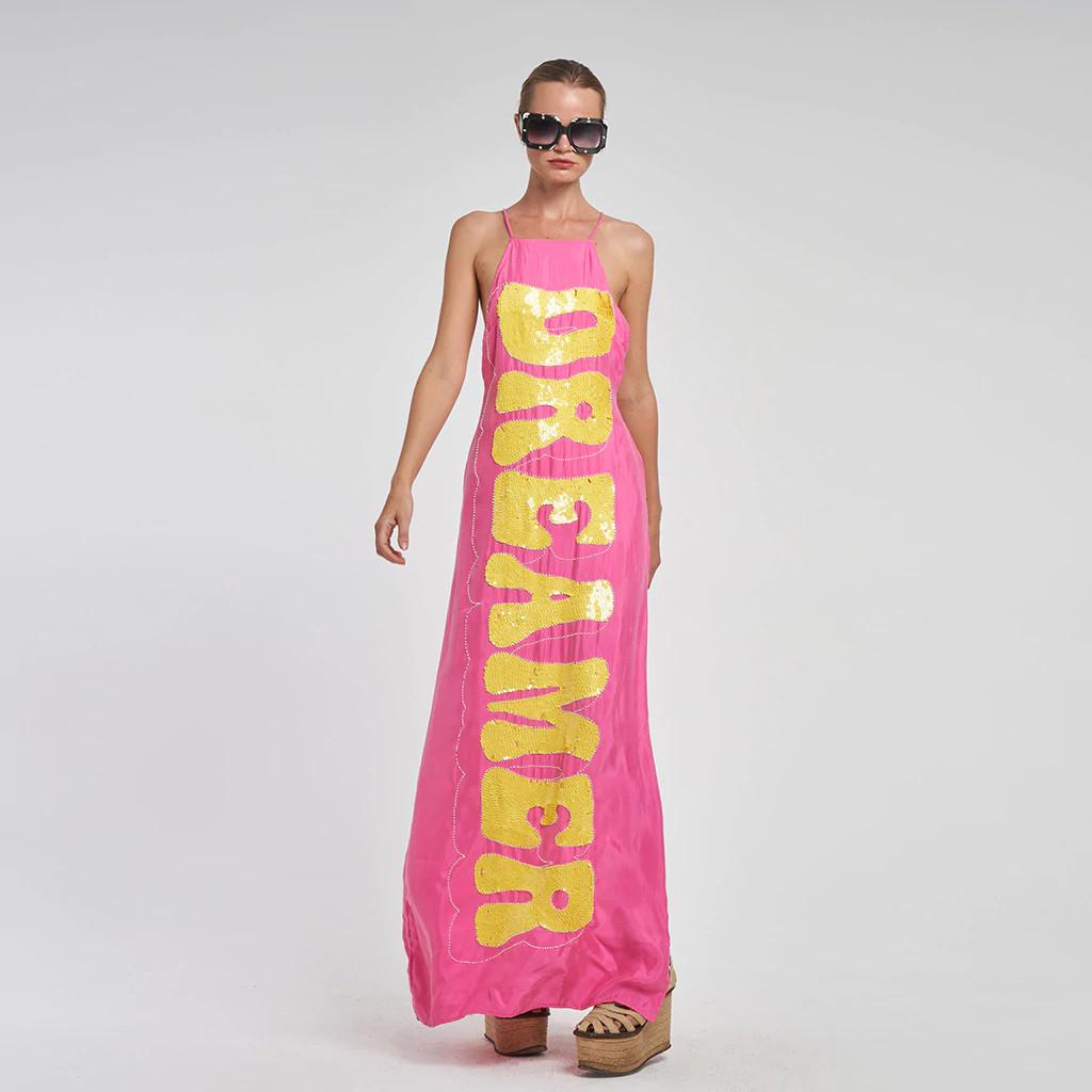 kleid rosa gelb