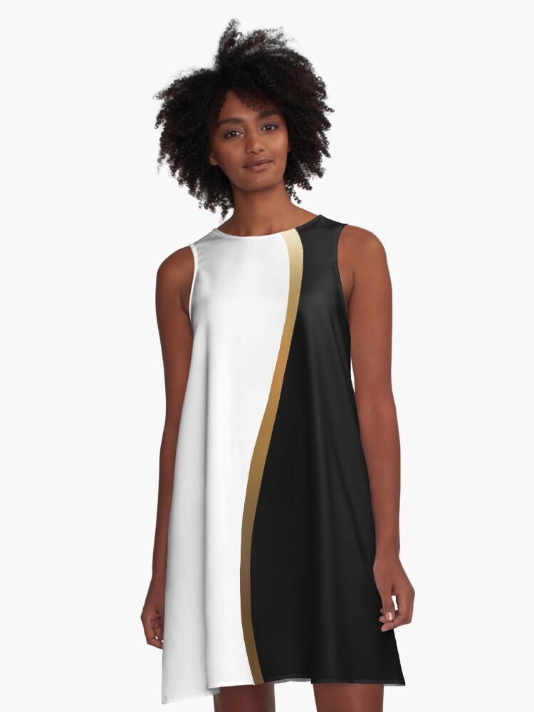 kleid schwarz weiß gold