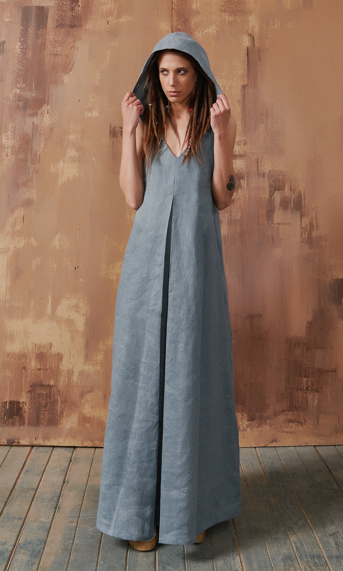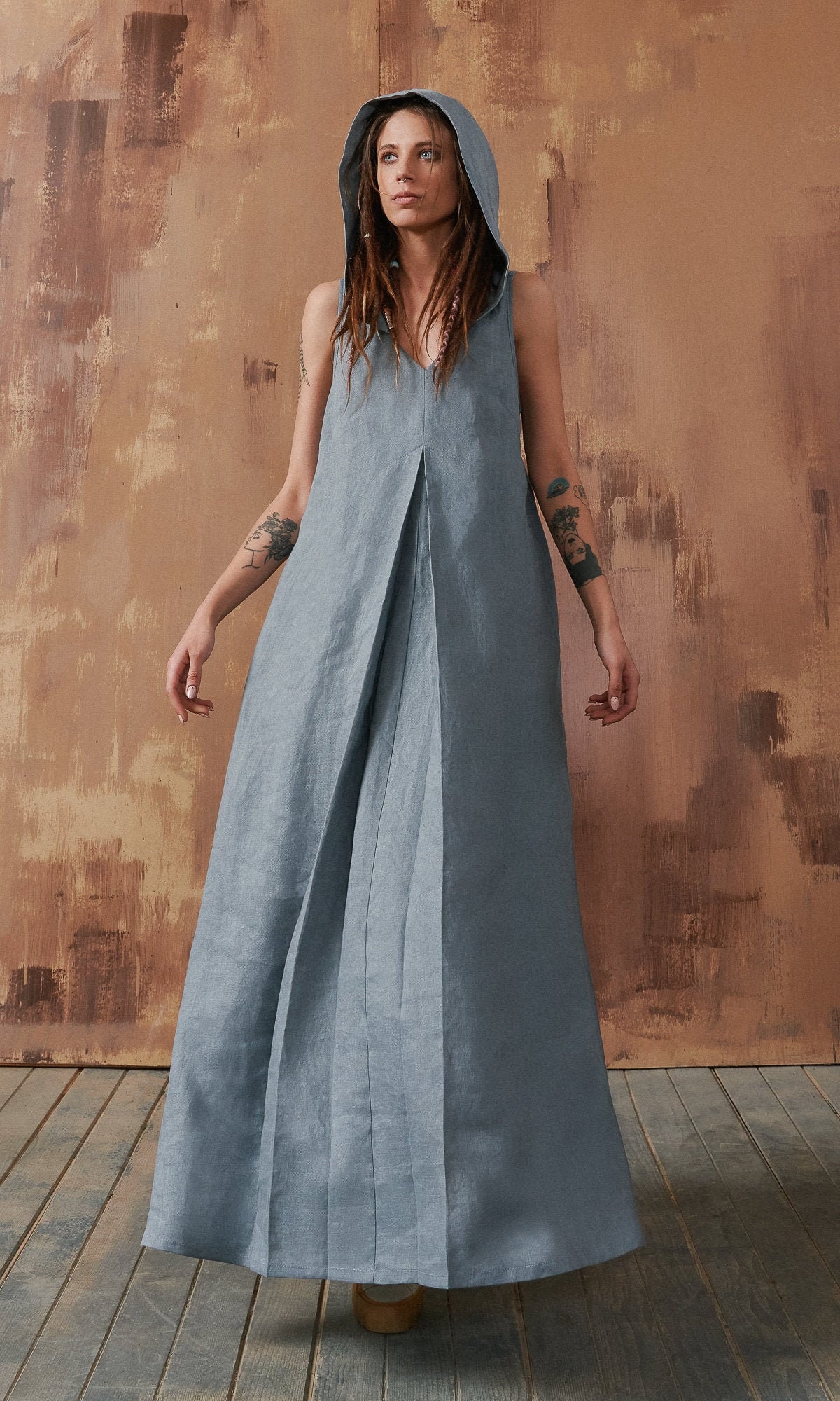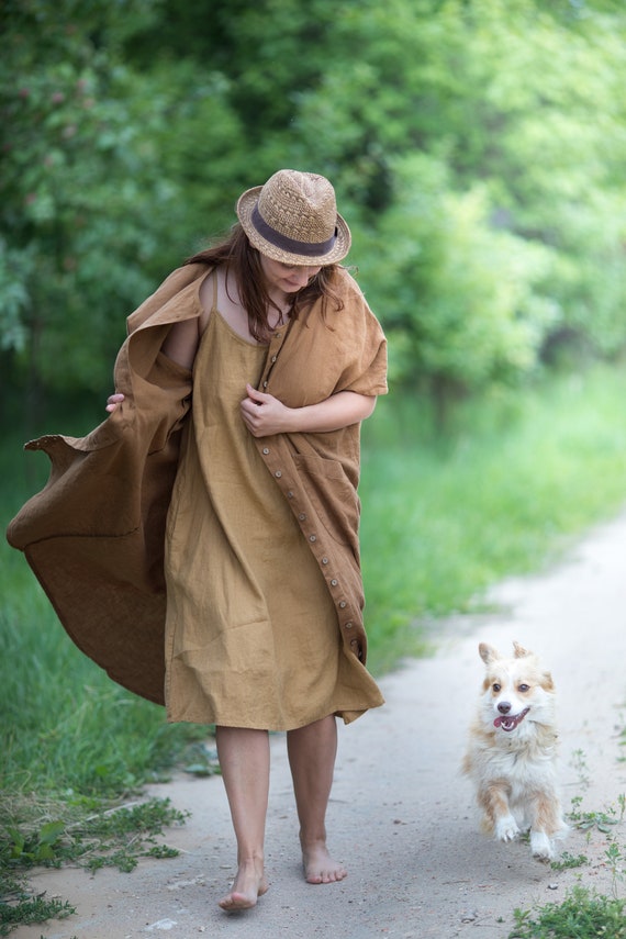 leinenkleid mit knöpfen