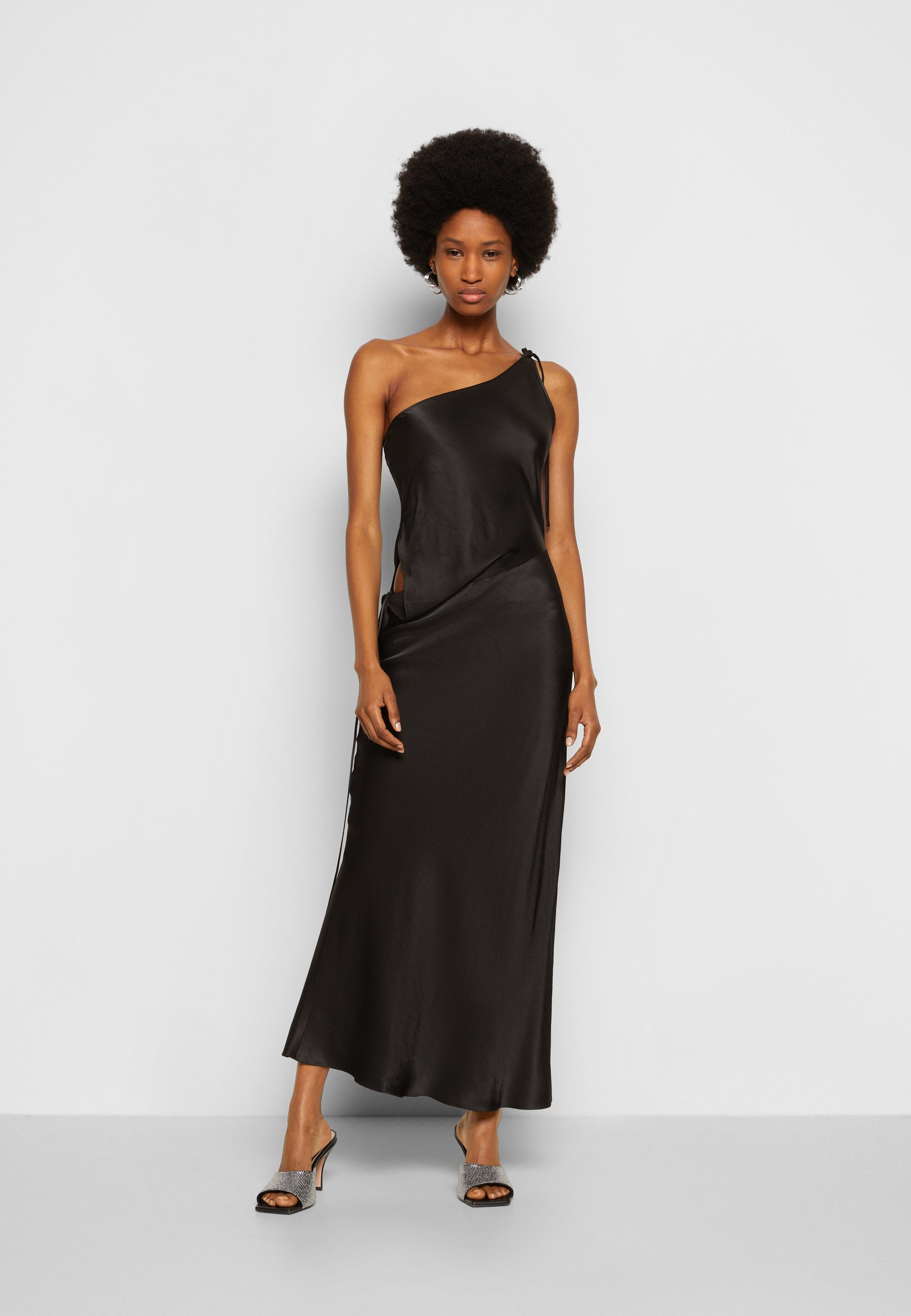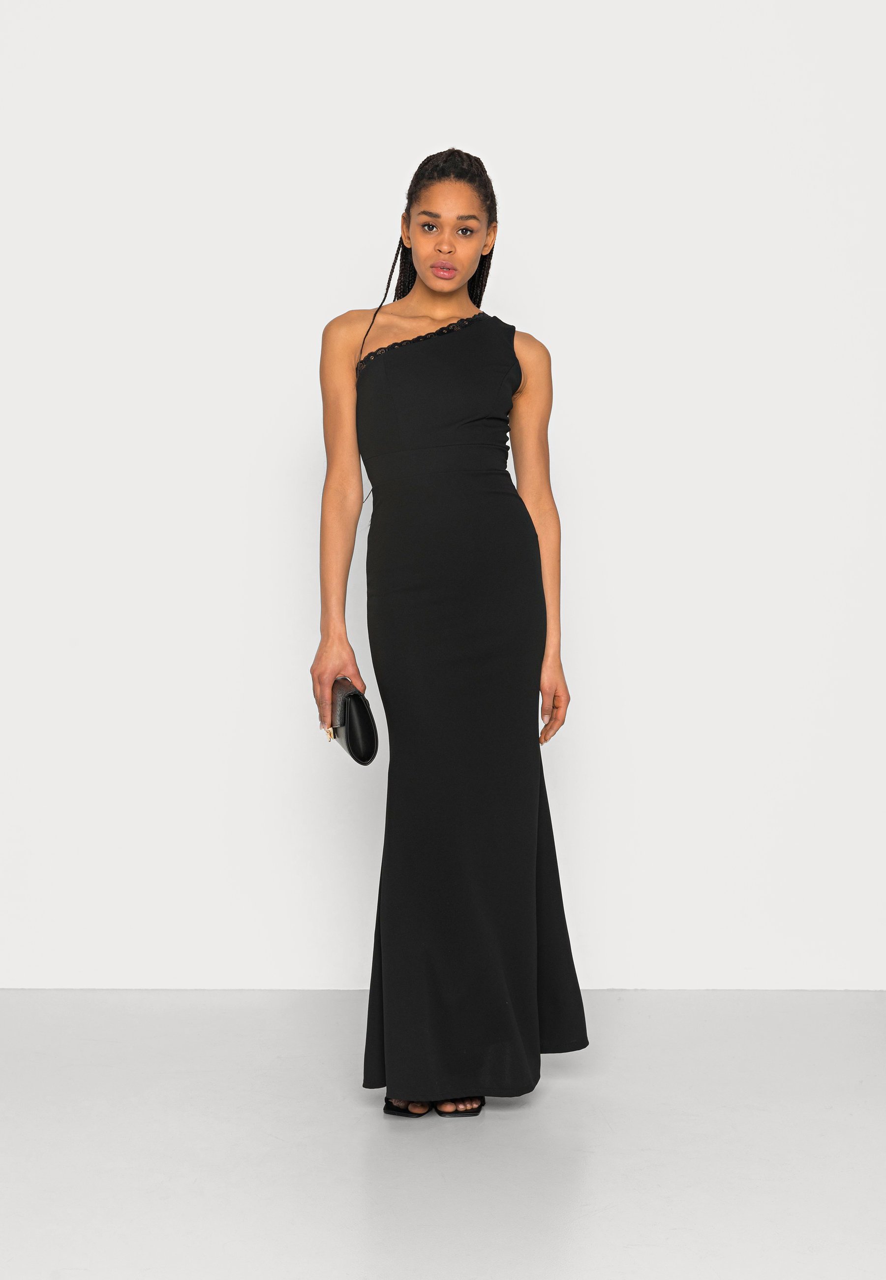 one shoulder kleid schwarz lang