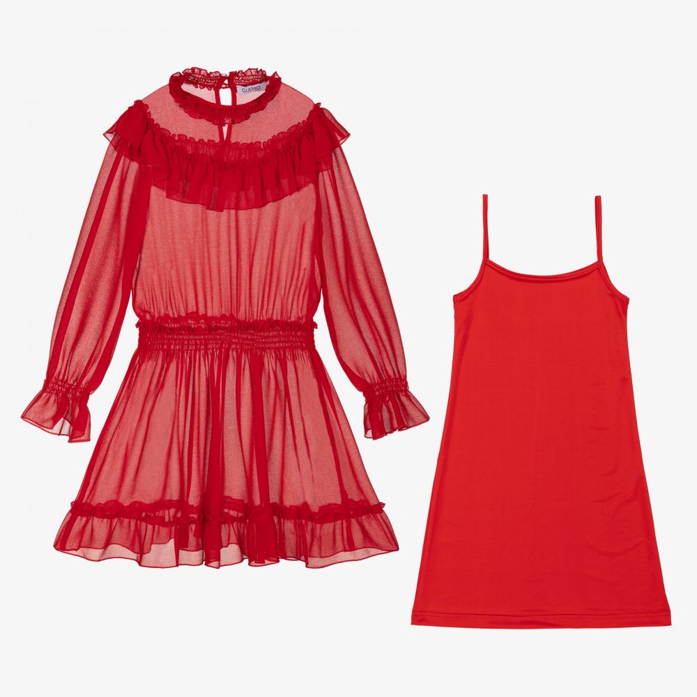 rotes chiffonkleid