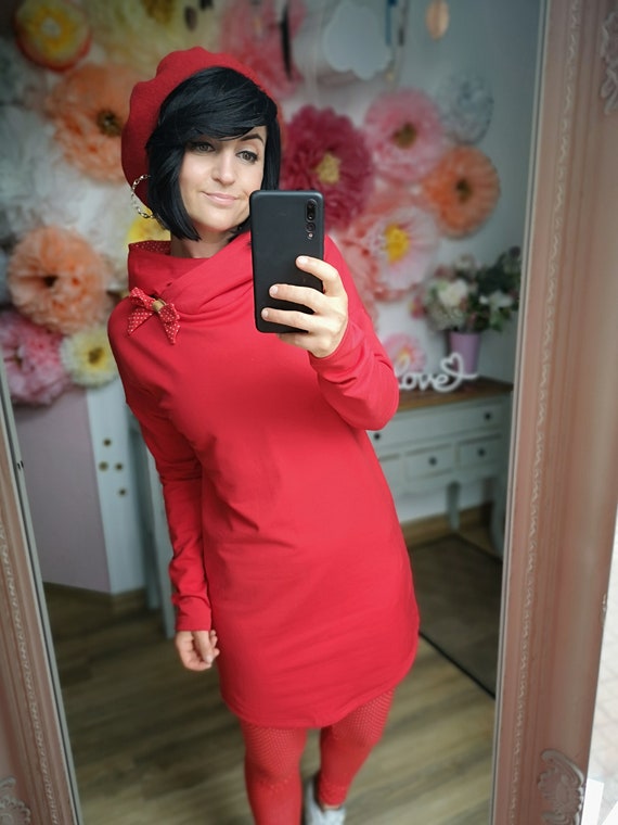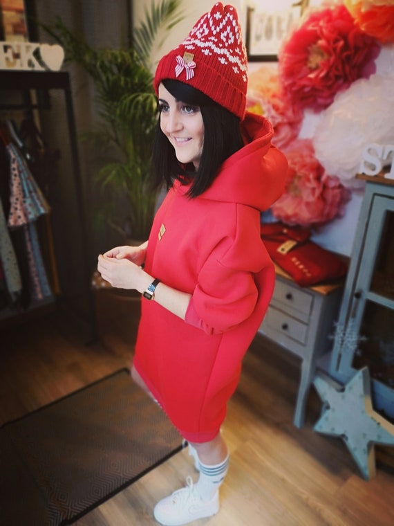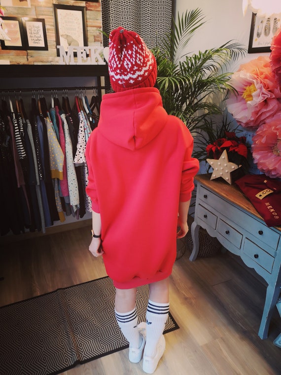 rotes hoodiekleid