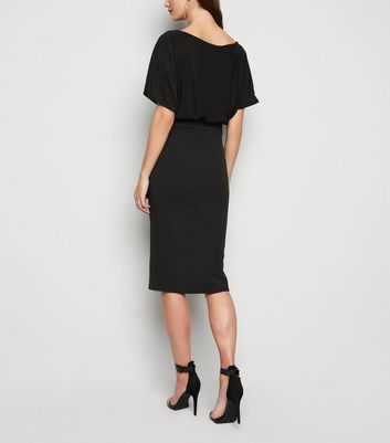 schwarzes kleid mit fledermausärmeln