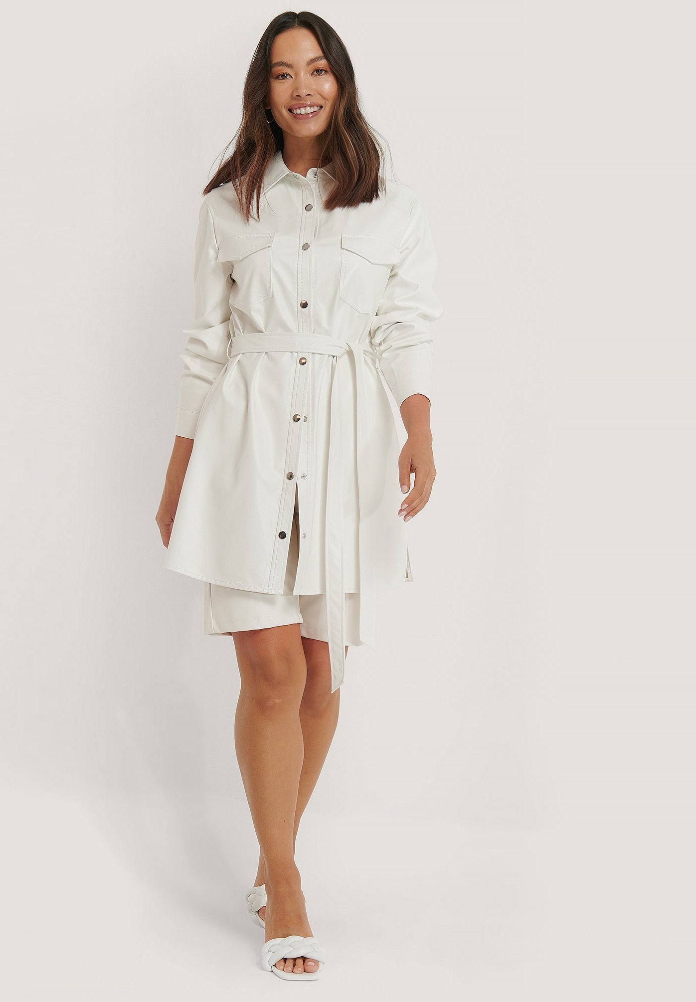 weißes hemdkleid mit gürtel